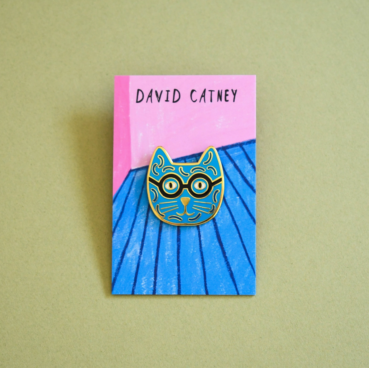 Part of the Cat Artist collection by Nia Gould, the Catney enamel pin reimagines the artist icon David Hockney with a feline twist. Made from durable hard enamel and presented on an illustrated backing card, it’s a stylish collectible for pin enthusiasts and art fans.