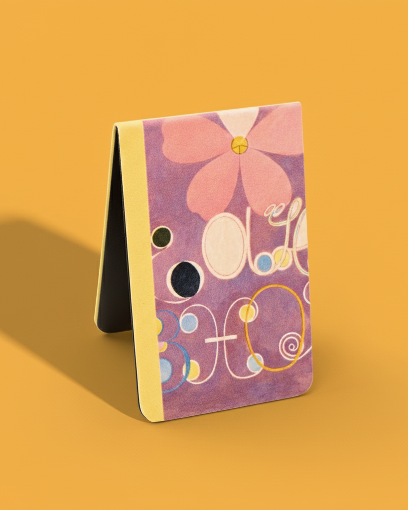 Elevate your reading experience with this magnetic bookmark featuring Hilma af Klint’s The Ten Largest, No. 5, Adulthood (1907). Showcasing her visionary use of colour and form, this sleek and durable bookmark combines artistic beauty with everyday functionality. Its strong magnetic closure keeps your place securely marked, making it the perfect companion for art lovers and avid readers alike.