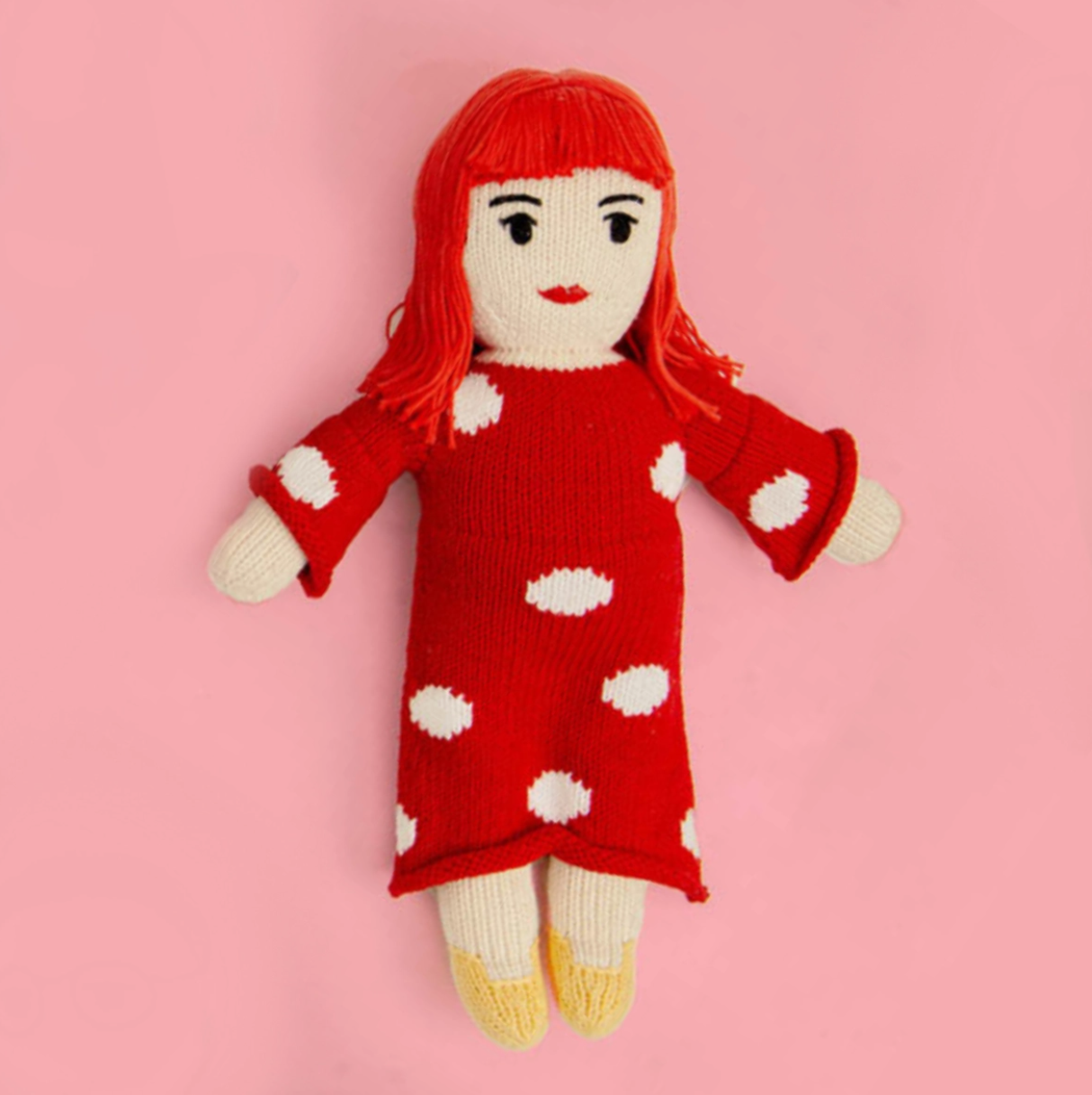 Inspire imagination with thisYayoi Kusama knitted doll, a colourful tribute to the iconic artist known for her signature red hair and bold polka dots. Handcrafted from soft cotton and filled with polyfill, this 12" x 5½" doll is both a playful keepsake and a meaningful way to empower communities through craft. Each purchase directly supports women artisans in south eastern Peru, providing opportunities to earn income from home while gaining access to health care and education for their families.